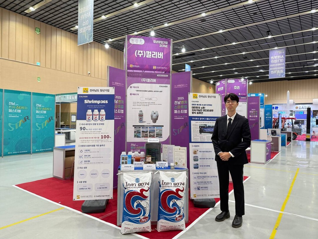 ㈜컬리버는 이번 페스티벌에 참여해 흰다리새우 양식용 복합 유용미생물, 프리미엄 사료, 급성간췌장괴사병 현장 진단키트, 수질 모니터링 시스템, 비스큐소스 등을 선보이며 참관객들로부터 큰 관심을 받았다. 특히, Shrimp365 유용미생물은 흰다리새우 양식장에서 독성 암모니아를 제거해 수질 개선과 장내 유익균 활성화를 통해 면역력 강화와 질병예방 효과를 제공하는 혁신적인 제품이다.